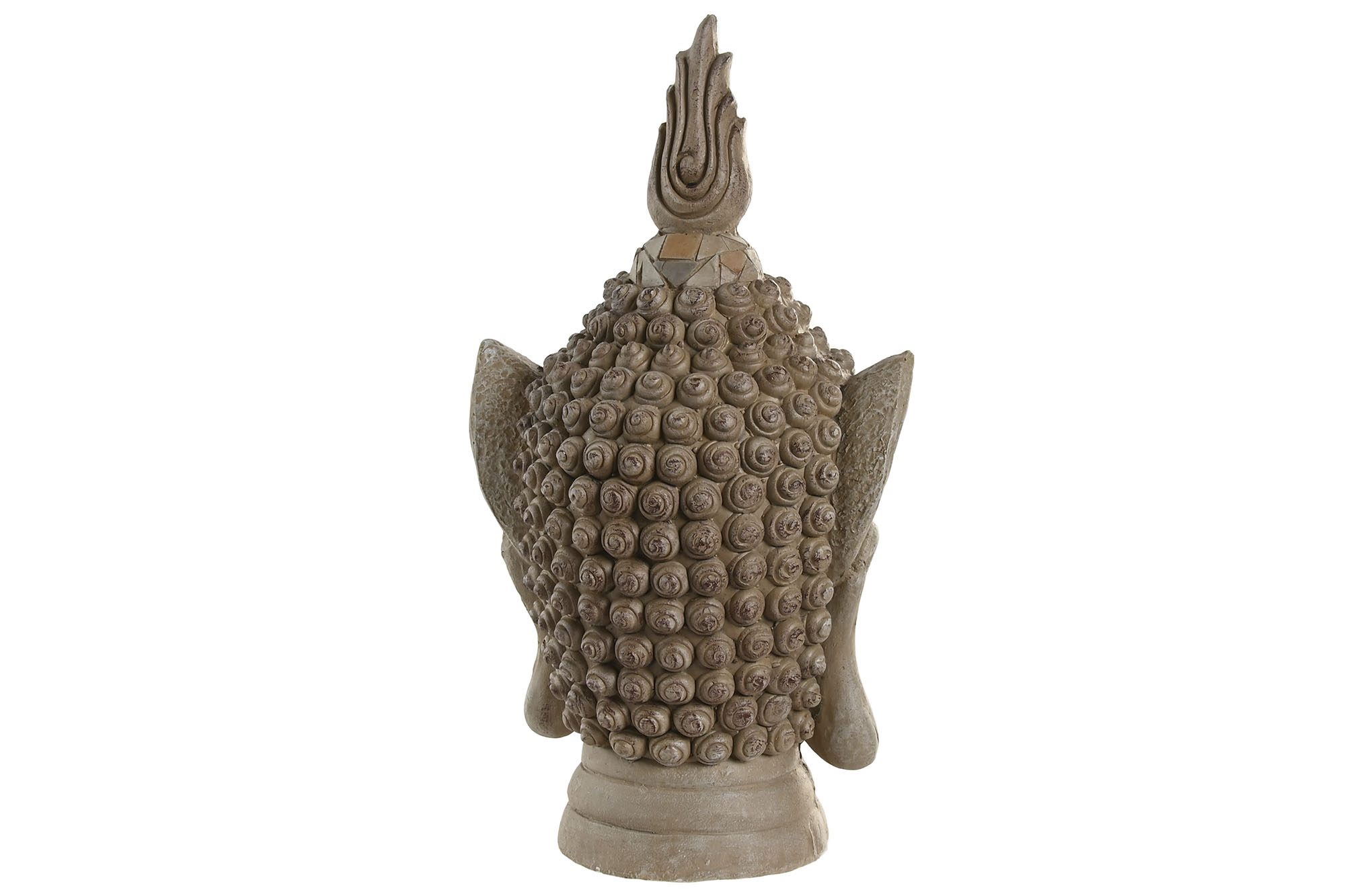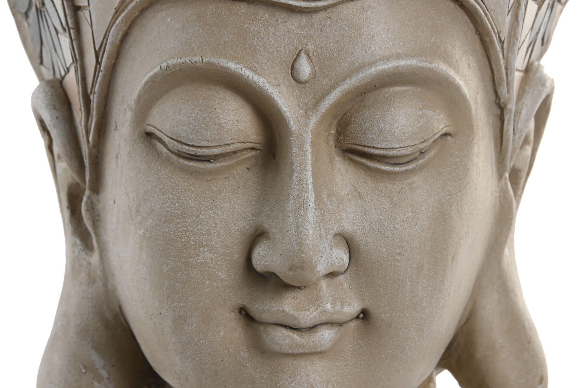 Kuju on valmistatud tugevast ja vastupidavast klaasfiibrist, mis tagab selle pikaealisuse ja kauakestva ilu. Viimistletud on see beezi tooniga, andes sellele elegantse ja kunstilise väljanägemise. Buddha pea suletud silmad ja detailiderikas disain sümboliseerivad sisemist rahu ja sügavat tarkust, luues mõtte- ja tunneteküllase õhkkonna.