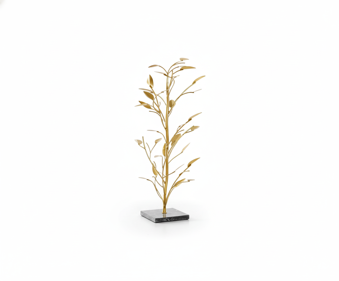 Dekoratsiooni konstruktsioon on metallist, mis garanteerib toote pikaajalise kestvuse ja vastupidavuse. Metallist põõsa kujuline disain peegeldab meisterlikkust ja detailidele pööratud tähelepanu, andes iga riiuli, diivanilaua või konsooli visuaalsele ilmele lisaväärtust. Tootele lisab elegantsi marmoralus, millel dekoratsioon asub, tuues esile materjalide loomuliku ilu ja tekstuuride harmoonia.