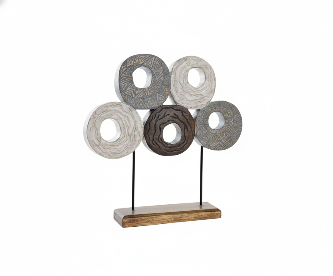 Omanäoline dekoratsioon Circles kaunistab teie kodu stiilselt. Ringikujulised detailid koos puidust alusega sulavad harmooniliselt ühte, luues originaalse väljanägemisega dekoratiivse aksessuaari. Aksessuaar on valmistatud albaasia puidust, mis on tuntud oma kerguse ja vastupidavuse poolest, muutes selle suurepäraseks materjaliks dekoratsioonide loomisel. Puidust dekoratsioonid lisavad kodu kujundusele soojust ja naturaalset ilu.
