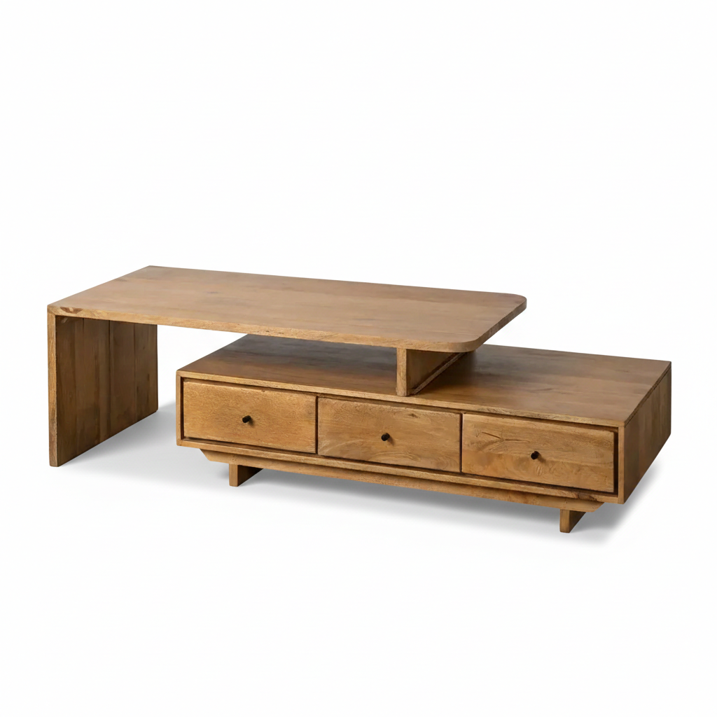 Diivanilaud paistab silma oma unikaalse ja kaasaegse disainiga. Laud on valmistatud kvaliteetsest mangopuidust, mille naturaalne viimistlus toob esile puidu loomuliku ilu ja tekstuuri.