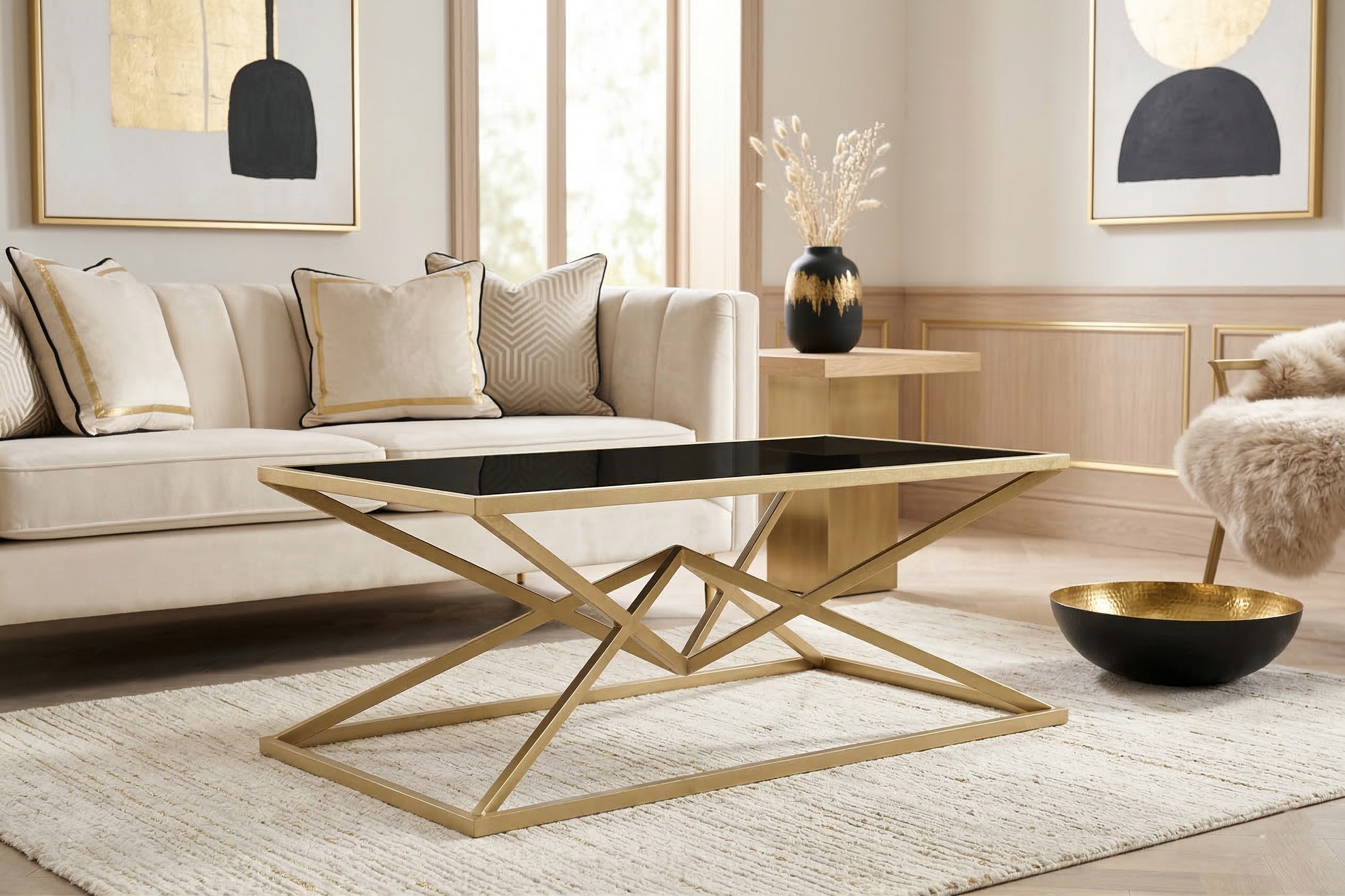Diivanilaud Pyramid on stiilne klaasi ja raua kooslus, mis rikastab igat interjööri. Lauaplaat on musta tooni klaasist. Diivanilaua kuldse viimistlusega raam on valmistatud rauast, mis loob aktsendi klaasi musta tooniga. See kombinatsioon lisab visuaalset atraktiivsust ja muudab laua pilkupüüdvaks