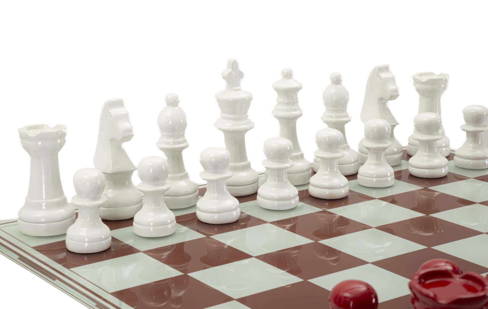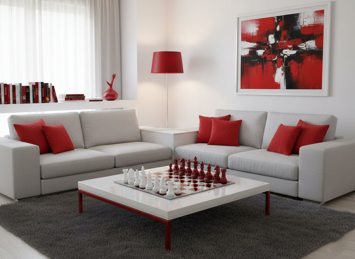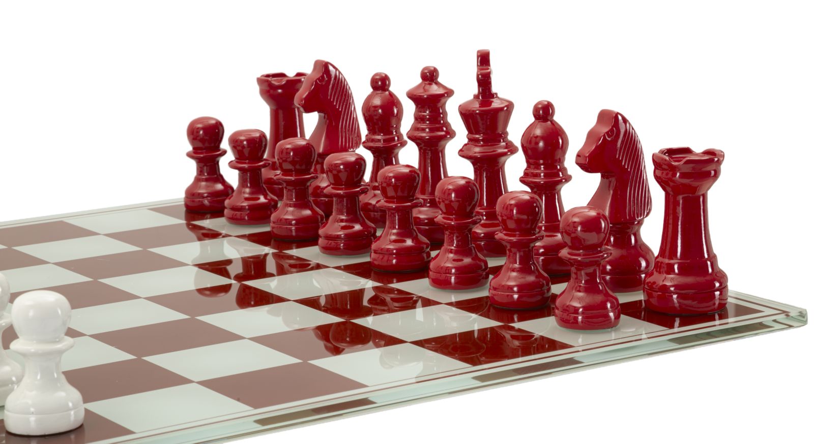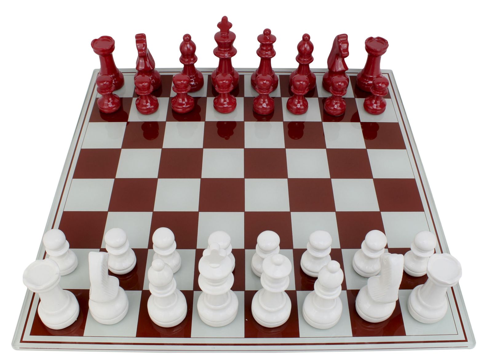 Komplekt on elegantse klaasist alusega, ning lakitud resiinist mängunuppudega. Punane ja valge toon muudavad mängu julgeks ja visuaalselt mõjukaks dekoratiivesemeks.