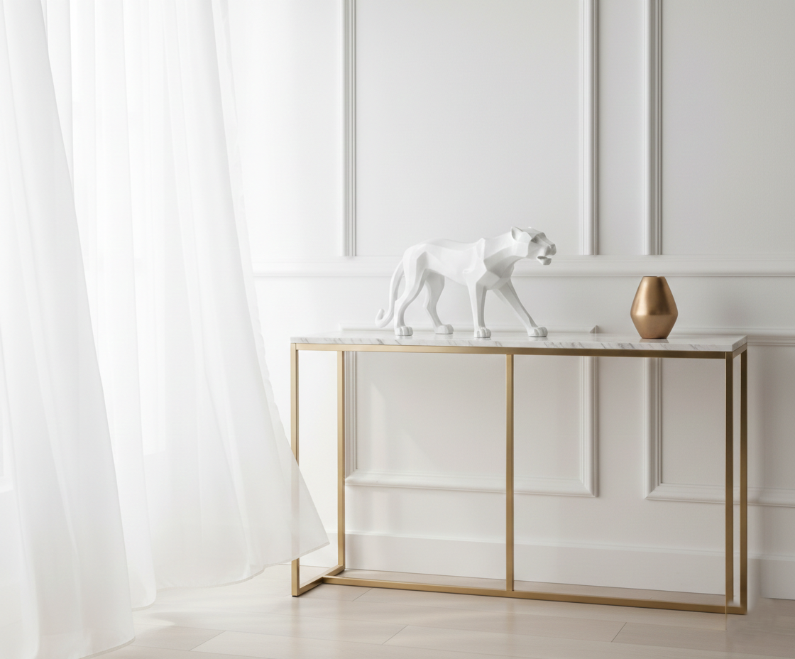 Valge viimistlus toob ruumi värskust ja elegantsi, samas kui pantri kuju lisab metsiku ja vabameelse vaimu. See kombinatsioon loob tasakaalu, mis on nii rahustav kui ka inspireeriv. Kuju võib olla suurepärane aksessuaar elutoas, kontoris või isegi magamistoas, muutes iga ruumi hubasemaks ja kutsuvamaks.