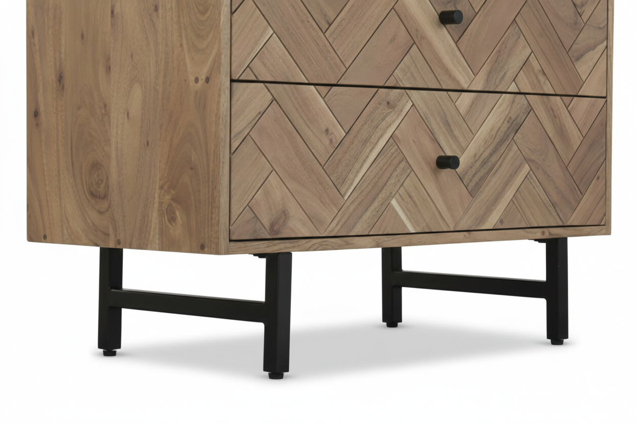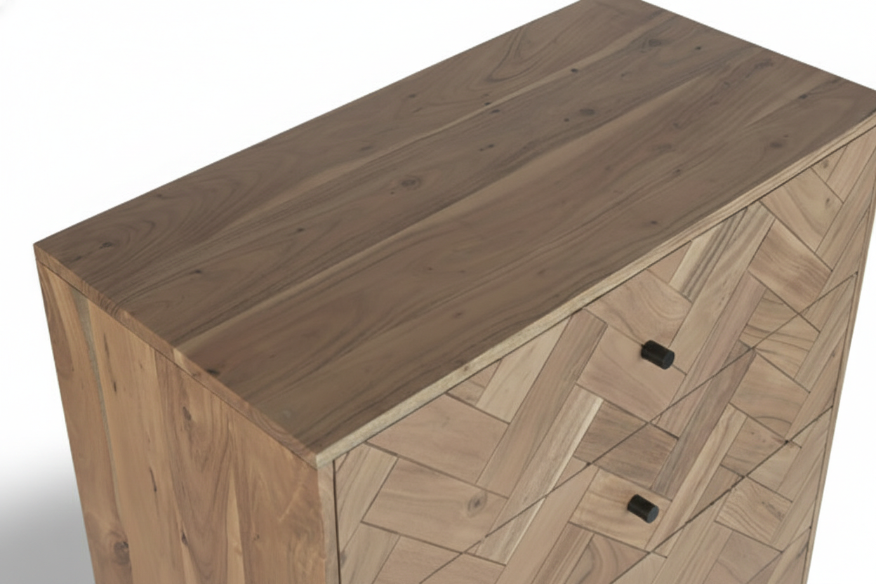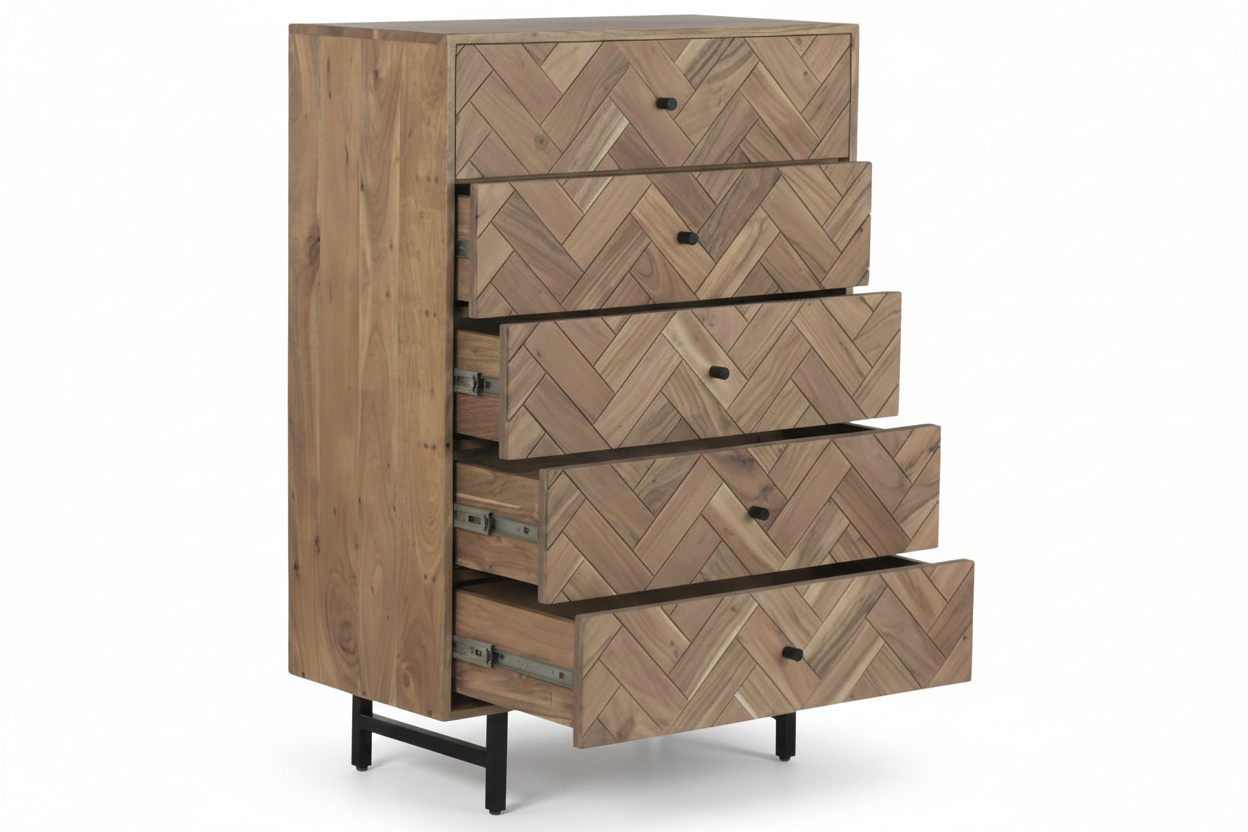 Kummut Pinos 5CJ disain eristub omanäolise ja pilkupüüdva disainiga, mis lisab ruumile isikupära ja stiili. Kummut on valmistatud akaatsiapuidust, mis tagab tugevuse ja vastupidavuse.