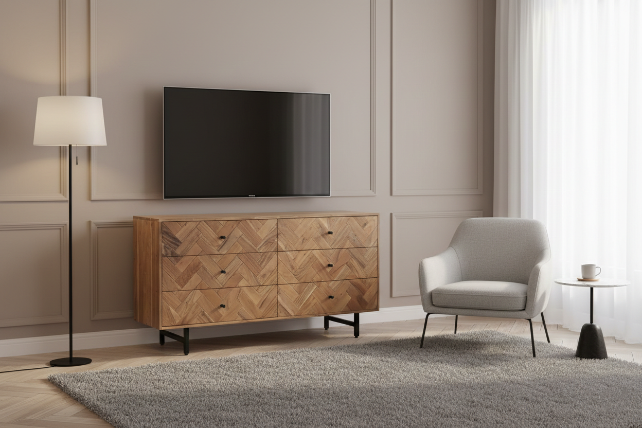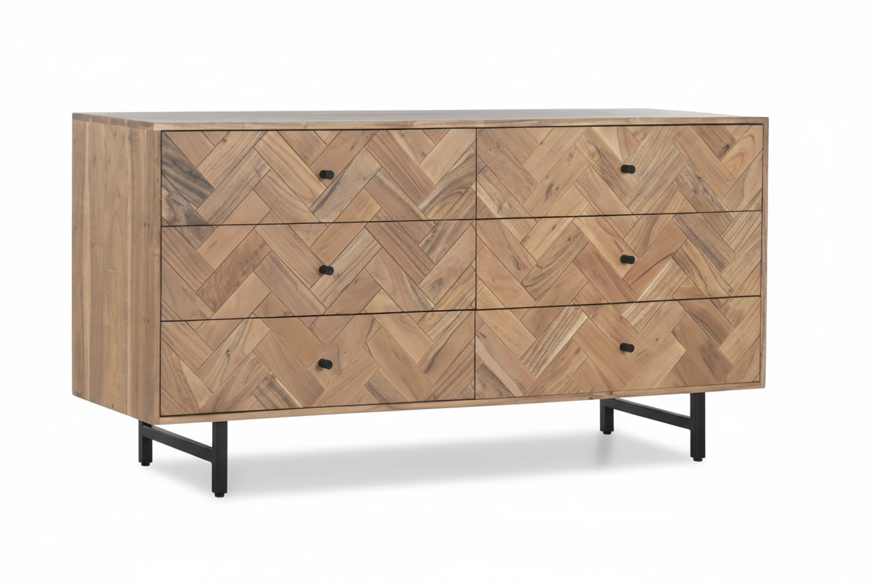 Kummut Pinos 6CJ disain eristub omanäolise ja pilkupüüdva disainiga, mis lisab ruumile isikupära ja stiili. Kummut on valmistatud akaatsiapuidust, mis tagab tugevuse ja vastupidavuse.