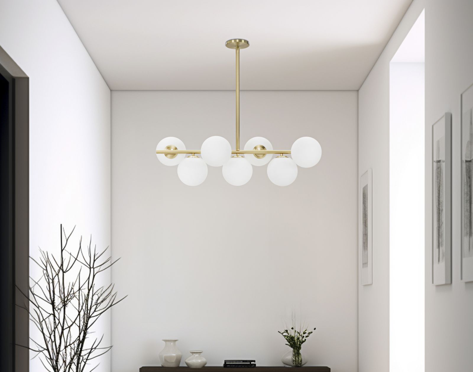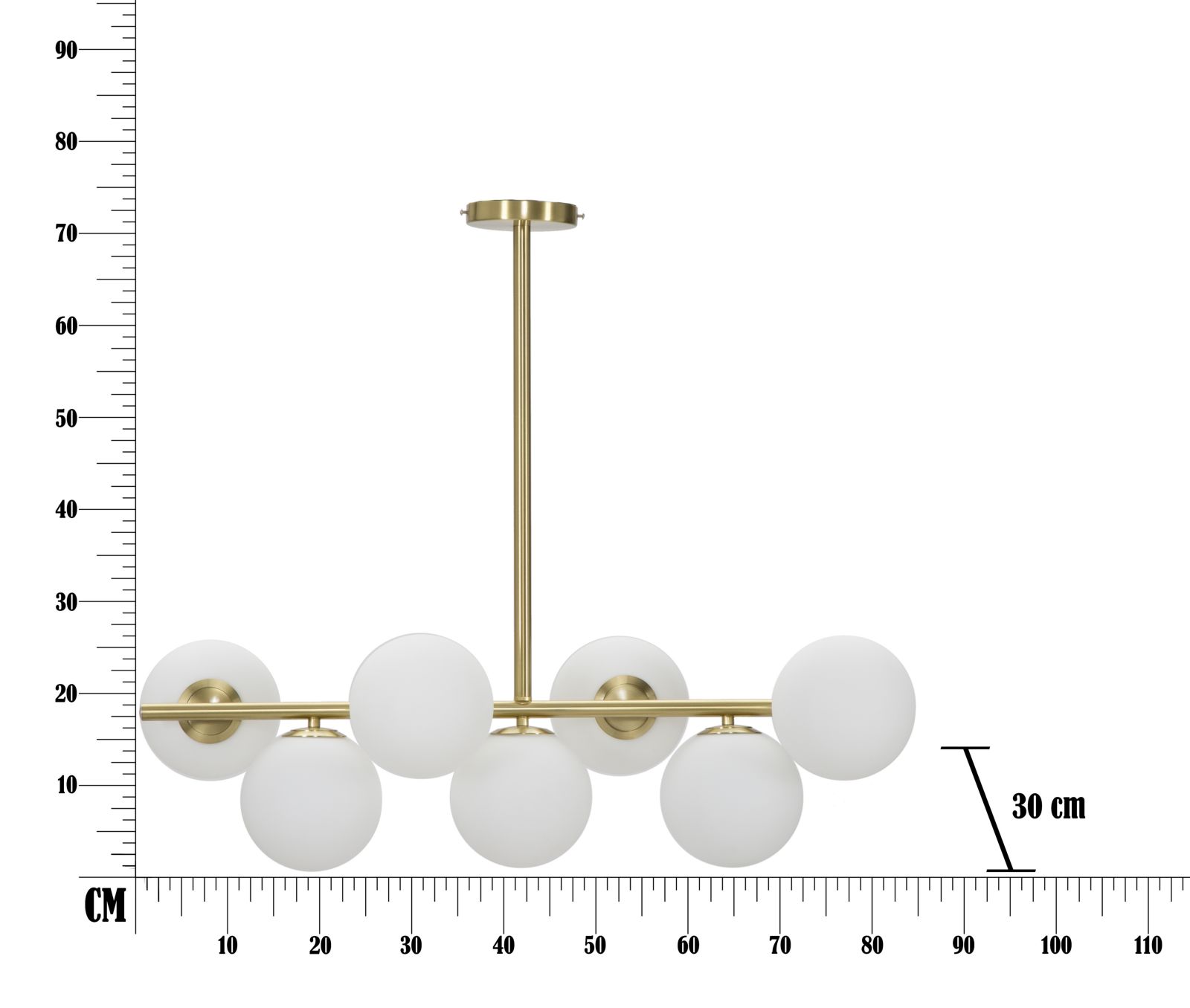 Laevalgusti Luci toob teie interjööri stiili ja elegantsi. Ainulaadne disain muudab iga ruum hubasemaks ja kutsuvamaks, luues samas silmapaistva fookuse, mis köidab tähelepanu. Valgusti raam on valmistatud metallist, mida täiendavad seitse piimklaasist kuplit. Valgusti on ideaalne täiendus igale ruumile, sobides esikusse, söögituppa, magamistuppa või elutuppa. Lambi raam on viimistletud kuldse tooniga, mis lisab ruumile sära ja luksuslikkust.