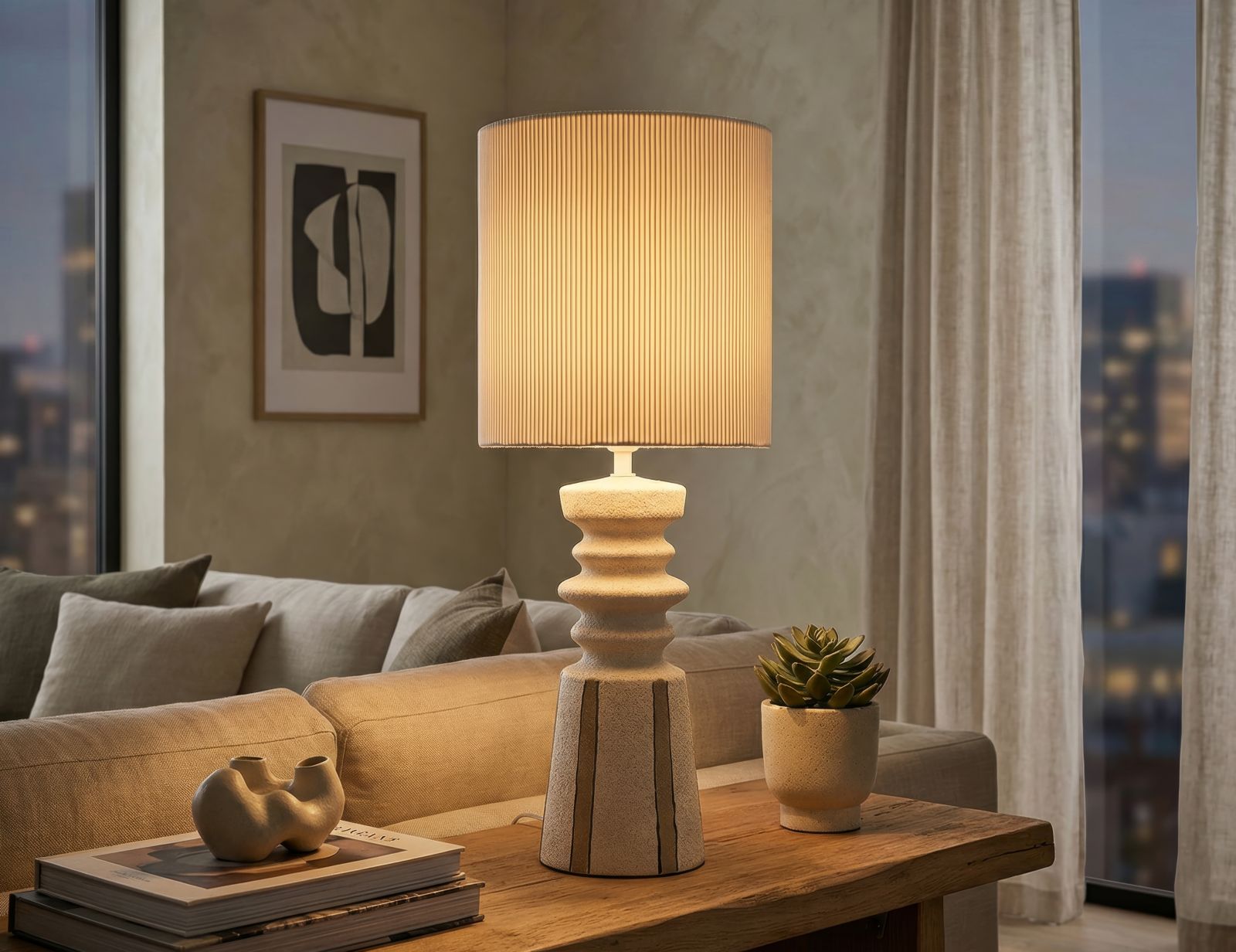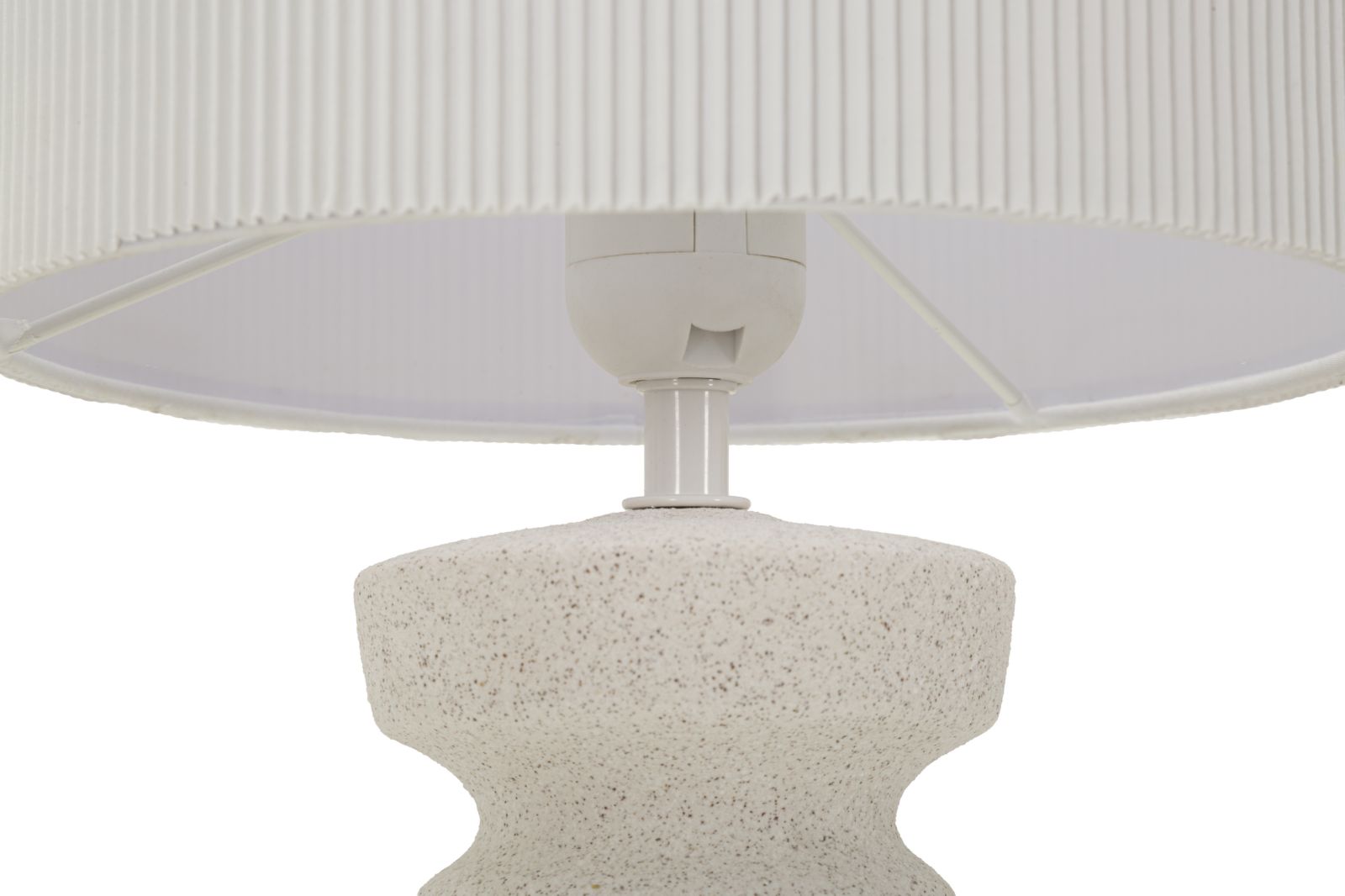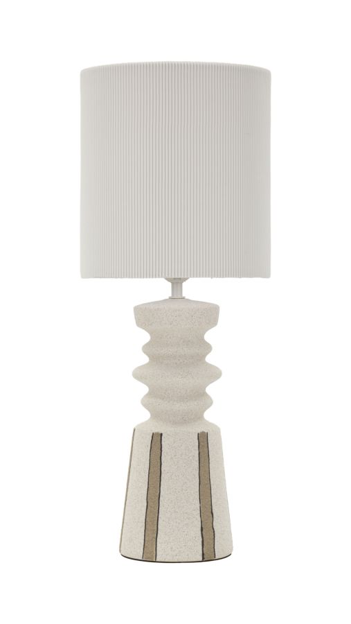 Valgusti lambivari on põnevast triibulisest kangast, mis pehmendab valgust ja loob ruumis hubase atmosfääri. Triibuline muster lisab disainile dünaamilisust, samas kui valge värvitoon tagab, et valgus jaotub ühtlaselt, luues meeldiva ja kutsuva valguse. Lambivari on hoolikalt kujundatud, et see sobiks ideaalselt aluse skulpturaalse disainiga, luues harmoonilise ja tasakaalustatud välimuse.