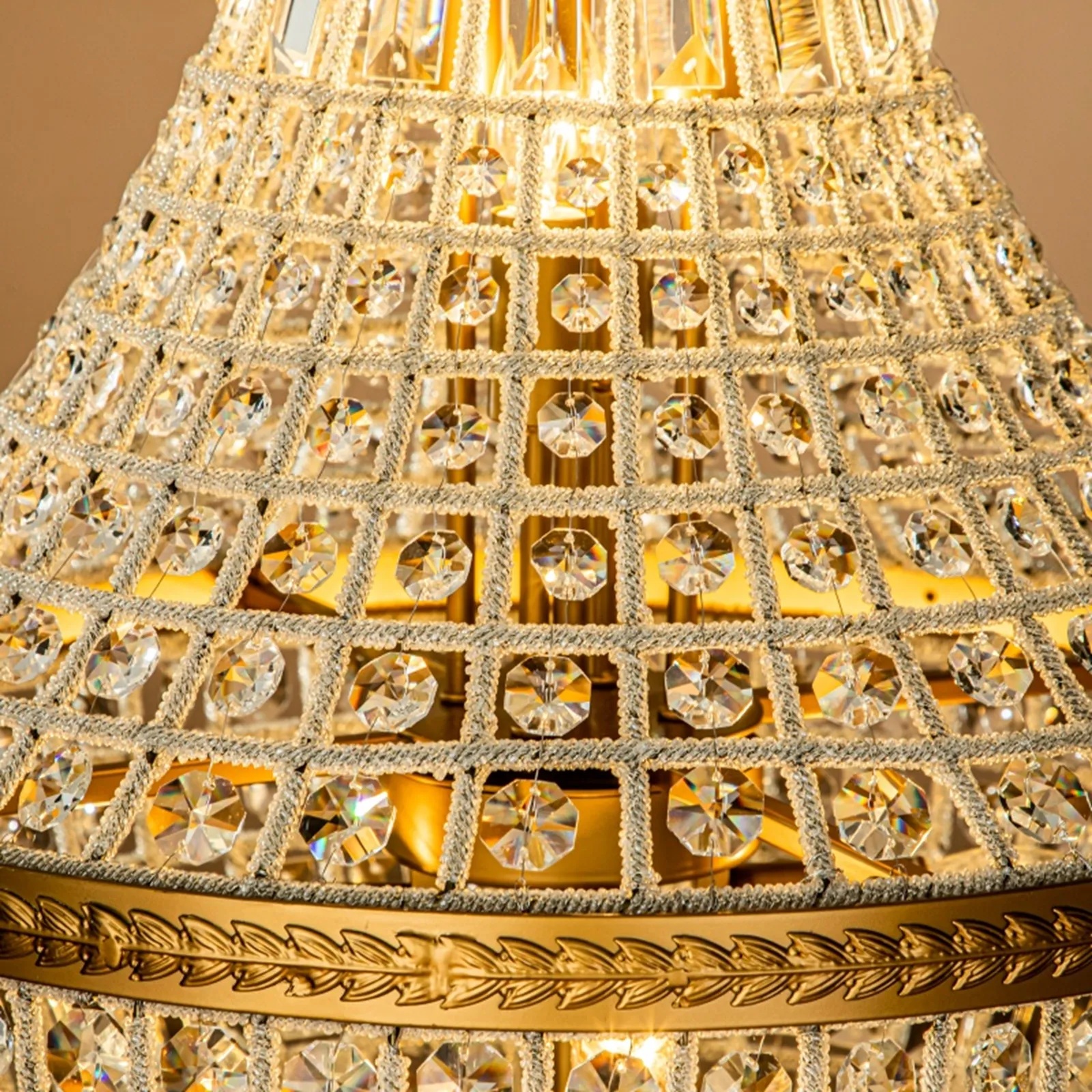 Lühter on valmistatud kõrgeima kvaliteediga materjalidest, mis tagavad mitte ainult esteetilise ilu, vaid ka vastupidavuse. Klaasdetailid on hoolikalt valitud, et tagada nende selgus ja sära, peegeldades valgust kaunilt igas suunas. Lühtri struktuur on valmistatud tugevast metallist, mis on kaetud elegantse viimistlusega. Iga detail on hoolikalt viimistletud, et tagada lühtri luksuslik välimus ja kvaliteet.