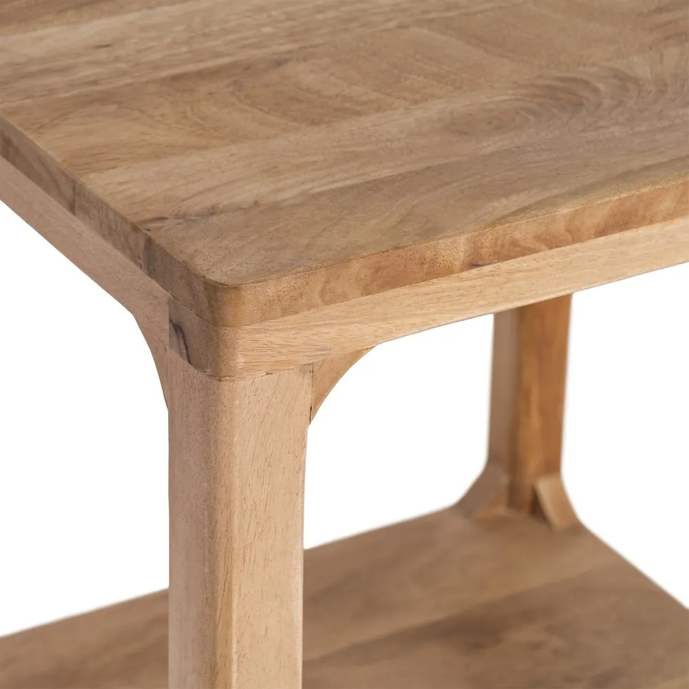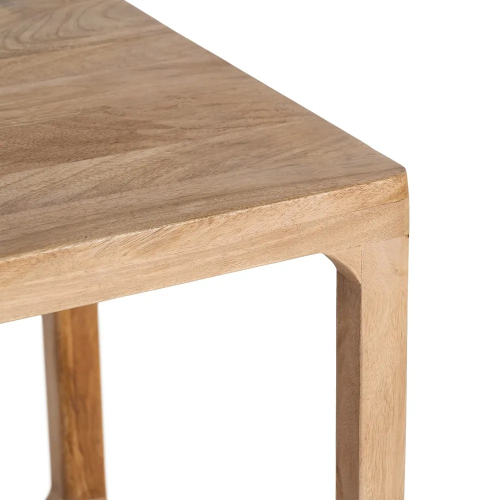 Nurgalaud Asanti on tõeliselt silmapaistev mööbliese, mis ühendab endas lihtsuse ja elegantsi. Disain on hoolikalt läbi mõeldud, et pakkuda mitte ainult esteetilist naudingut, vaid ka praktilisust igapäevaelus. Nurgalaud on valmistatud kvaliteetsest mangopuidust, mis on tuntud oma vastupidavuse ja ilu poolest. Iga laud on ainulaadne, kuna puidu tekstuur ja värvitoon võivad varieeruda, andes igale lauale isikupära.