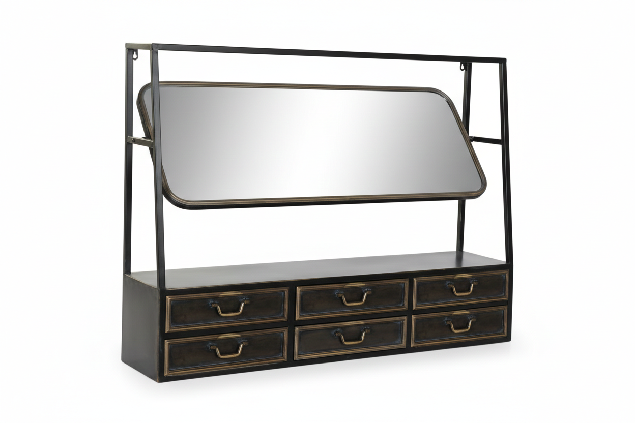Peegel Loft on samal ajal nii stiilne kui ka praktiline aksessuaar. Kvaliteetne viimistlus ja tähelepanu püüdvad detailid ning praktilisus muudavad peegli asendamatuks elutoas, lastetoas, magamistoas või garderoobis. Peegli alumises osas on kuus sahtlit, kus on piisavalt ruumi ehetele ja aksessuaaridele, nii et need on alati korralikult hoiustatud ja kergelt kättesaadavad. Peegel on valmistatud metallist ning peegli kalle on muudetav, mis võimaldab peeglit vastavalt oma vajadustele täpselt kohandada. See omadus tagab, et peegel on alati optimaalse nurga all, pakkudes parimat võimalikku peegeldust ja kasutusmugavust.