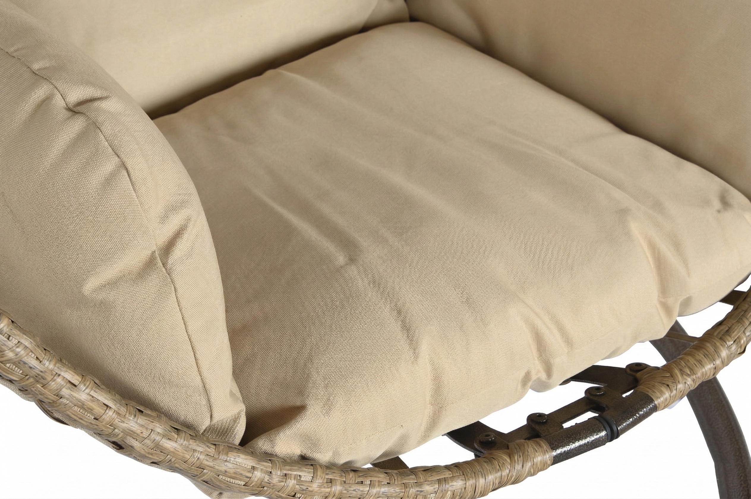 Ripptool Comba on suurepärane lisand igale õuealale, ühendades stiilse disaini ja praktilisuse. Elegantne tool on alumiiniumist konstruktsiooniga, mis on kaetud stiilse ja vastupidava sünteetilise rotangiga. Ripptooli disain on lihtne, kuid hubane, pakkudes mugavust pehmete polsterdatud patjadega.