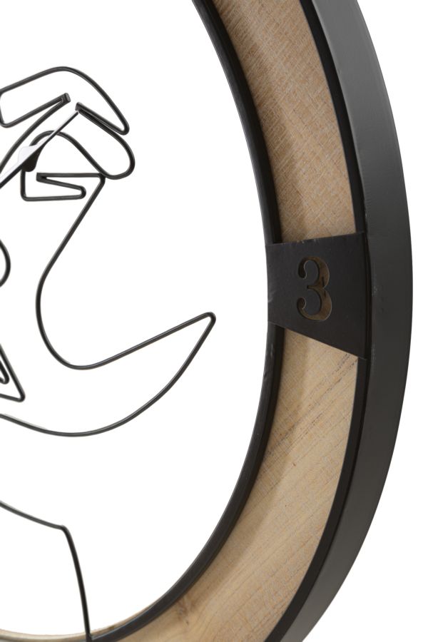 Seinakell on valmistatud kvaliteetsest rauast ja puidust, mis tagab selle vastupidavuse ja pikaealisuse. Kell on viimistletud naturaalse ja musta tooniga, mis loob harmoonilise tasakaalu ning sobib ideaalselt erinevatesse sisekujundustesse. Kella keskel asuv paari motiiv on selle disaini tõeline tõmbenumber. See ei ole mitte ainult visuaalselt köitev, vaid kutsub ka mõtetes seiklema.