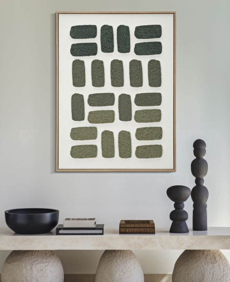 Seinapilt Deep tõmbab tähelepanu oma stiilsete reljeefsete detailidega. See on suurepärane näide sellest, kuidas lihtsus ja iseloom võivad koos eksisteerida, luues visuaalselt köitva ja samas rahuliku atmosfääri. Pildi valge taust loob puhta ja avara tunde, samas kui rohelised detailid lisavad sellele elujõudu ja energiat. Reljeefsed detailid seinapildil on pilkupüüdvad, mis loovad visuaalset sügavust ja huvi, kutsudes vaatlejat lähemale uurima, kuidas valgus ja vari mängivad pildi pinnal.