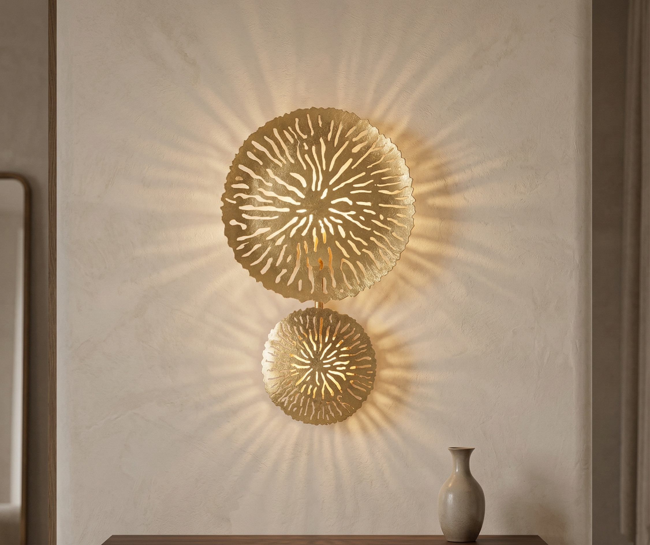 Seinavalgusti Simple on tõeliselt silmapaistev disainielement, mis toob igasse interjööri mitte ainult valgust, vaid ka luksusliku atmosfääri. Ringikujulised detailid ja kuldne viimistlus loovad harmoonilise ja stiilse koosluse, mis sobib ideaalselt igasse ruumi.