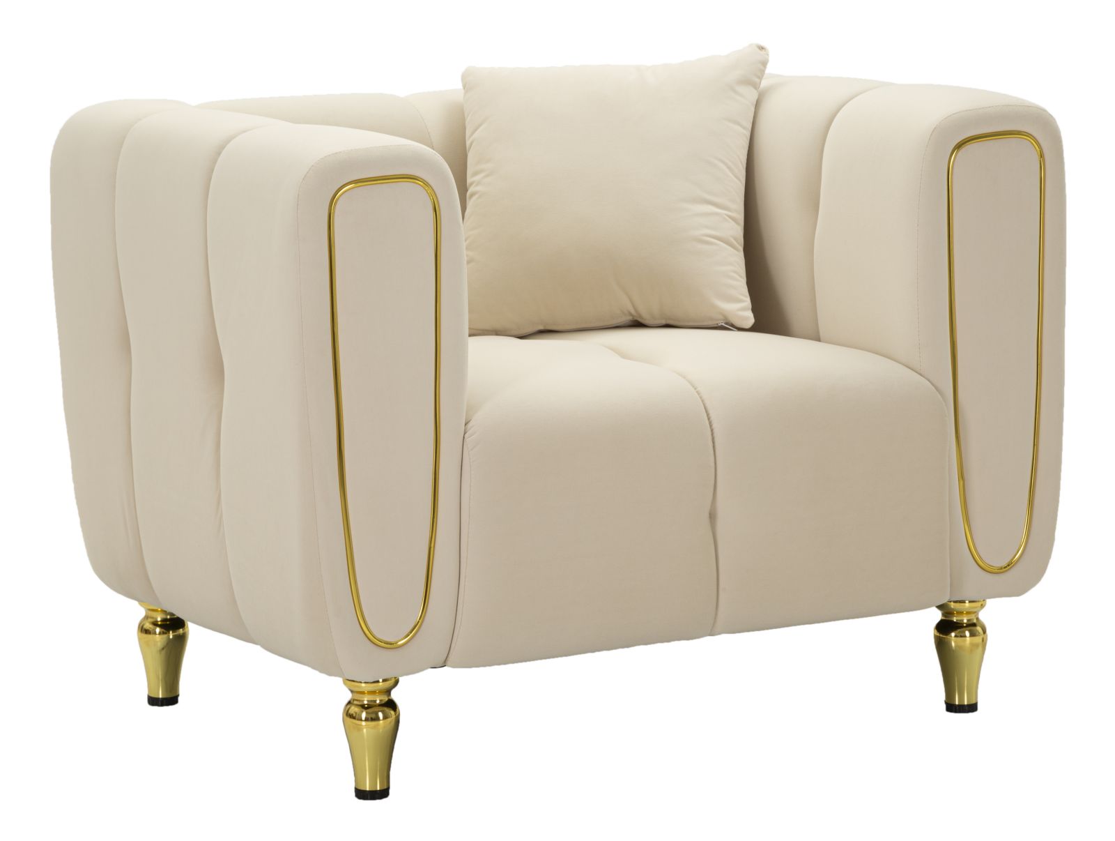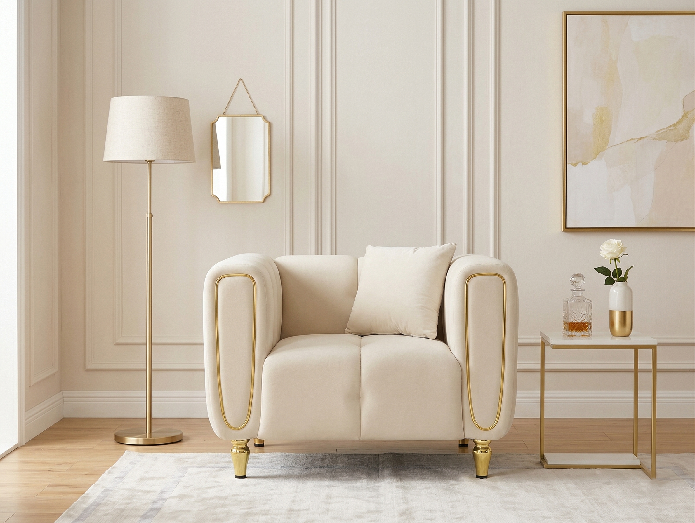 Tugitool Alma Beige on ideaalne valik neile, kes hindavad elegantsi ja mugavust. Sametine kangas ja kuldsed detailid teevad toolist tõeliselt unikaalse ja stiilse mööblieseme, mis toob teie kodu interjööri luksuslikku atmosfääri.