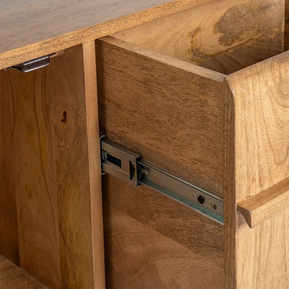 Tv-alus Cant on silmapaistev näide, kuidas minimalistlik disain ja naturaalsed materjalid loovad harmoonilise koosluse, mis rikastab igat interjööri. Telerialuse valmistamisel on kasutatud kvaliteetset mangopuitu, mis on tuntud oma tugevuse ja vastupidavuse poolest. Sooja tooni ja peene tekstuuriga puit loob interjööris hubase ja kutsuva atmosfääri. Iga mangopuidust toode on ainulaadne tänu puidu naturaalsetele variatsioonidele ja detailidele.
