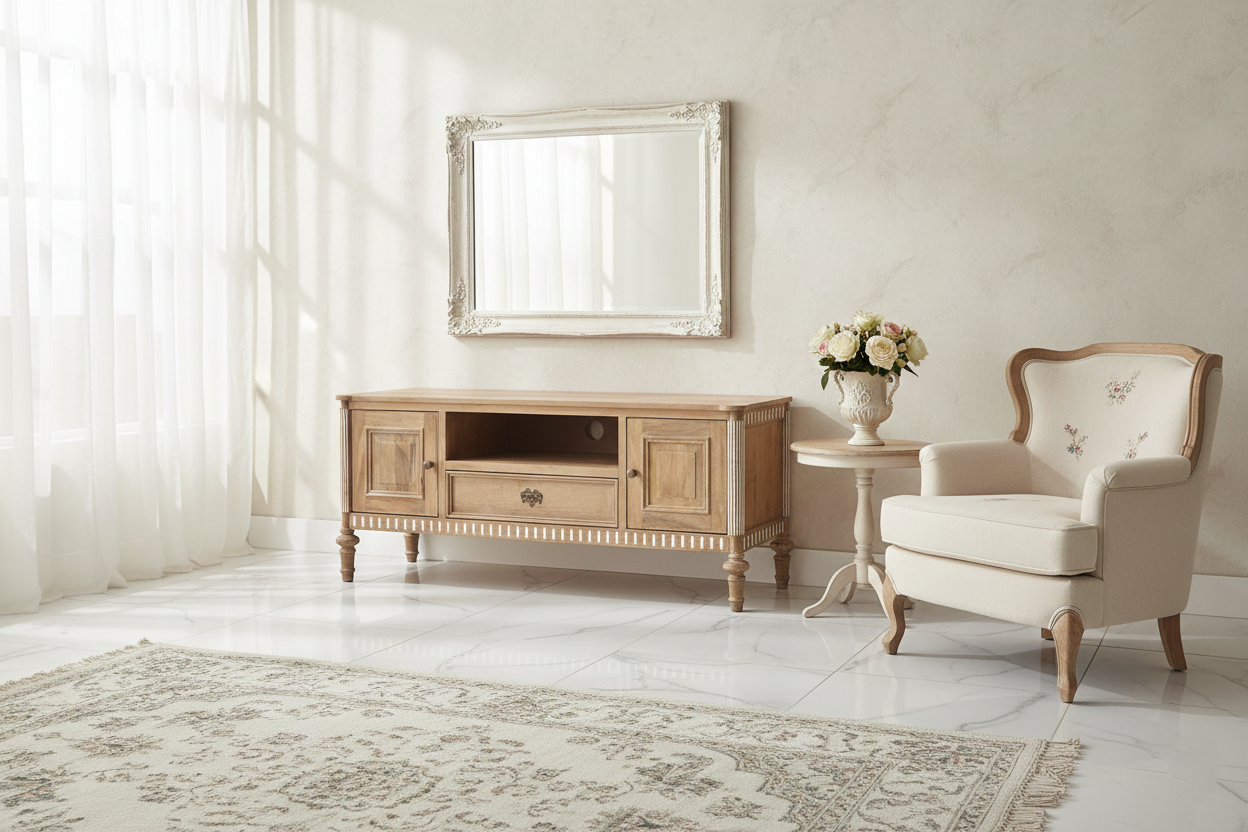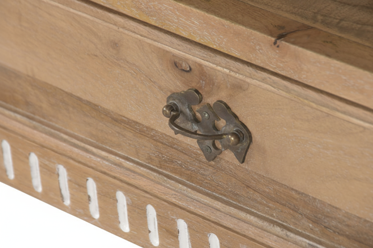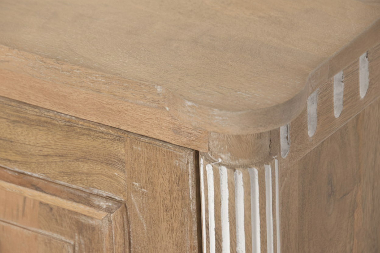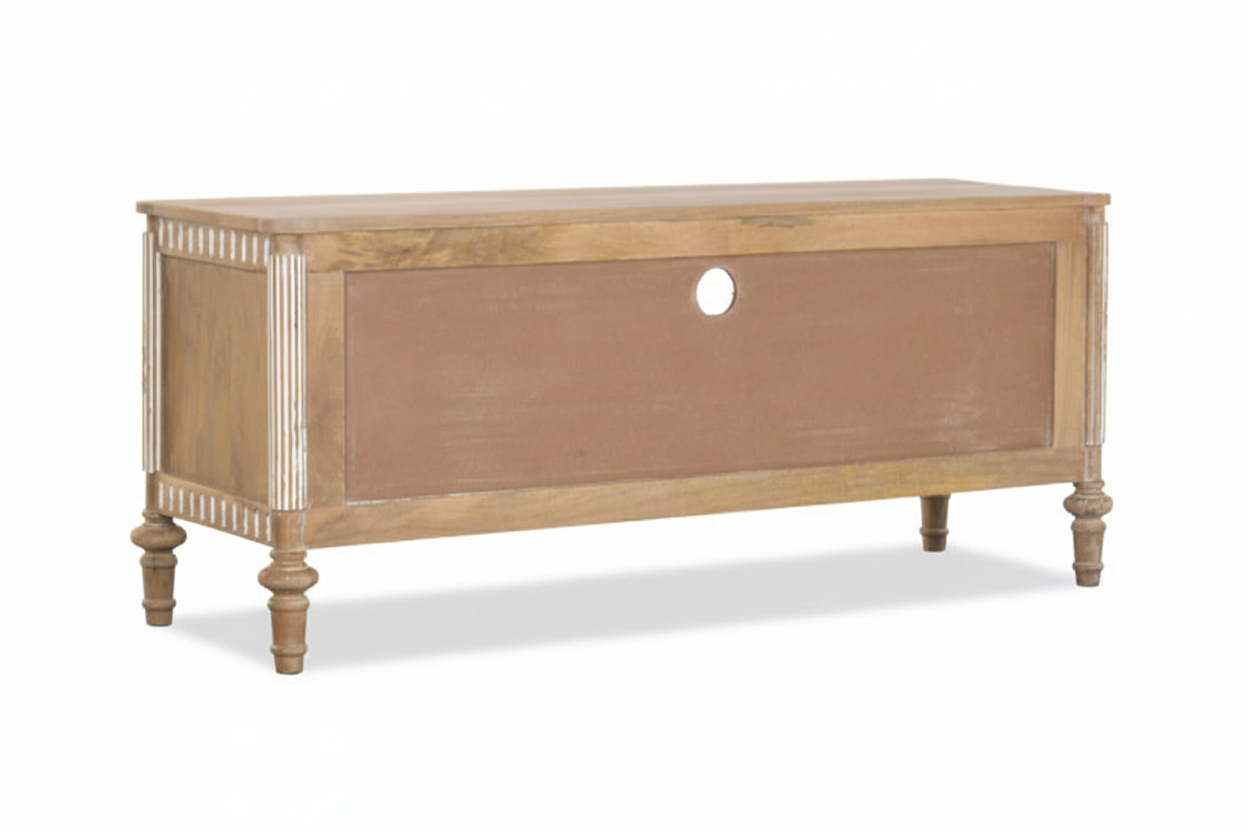 Tv-alus Castillo ühendab endas nii modernsust kui ka romantilist disaini, sobitudes sujuvalt igasse interjööri. Telerialus on valmistatud mangopuidust, mis on tuntud oma vastupidavuse ja pikaealisuse poolest. See tagab, et tv-alus pole mitte ainult visuaalselt kaunis, vaid ka praktiline investeering teie koju. Mangopuit on materjal, mis aja möödudes muutub kaunimaks, muutes kummuti aastate pärast veelgi iseloomulikumaks ja köitvamaks.