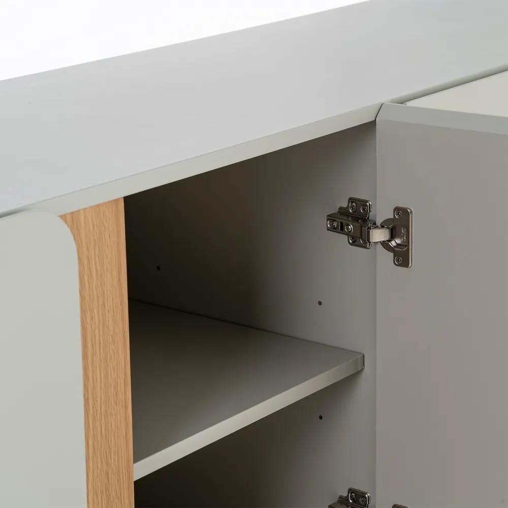 TV-alus on viimistletud beeži tooniga, mis loob rahuliku ja hubase atmosfääri igas ruumis. Beež on universaalne värv, mis sobib suurepäraselt erinevate sisustustrendidega. Aluse disainis on lisatud elegantsed puidutooni vaheliistud, mis pakuvad visuaalset atraktiivsust ja toovad esile naturaalse puidu ilu. Minimalistlik lähenemine disainile tagab, et alus ei domineeri ruumis, vaid täiendab seda harmooniliselt.