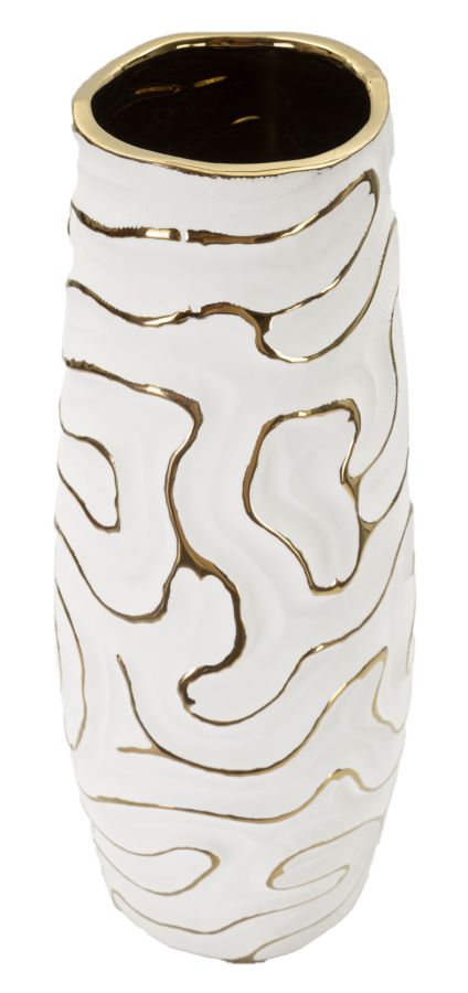 Vaas on viimistletud elegantse reljeefse mustriga, mis lisab sellele unikaalset iseloomu. Muster on hoolikalt kujundatud, et luua sügavus ja visuaalne atraktiivsus. Reljeefne disain loob ka huvitava kontrasti vaasi keraamilise pinnaga, andes sellele modernse ja samas ajatu ilme.