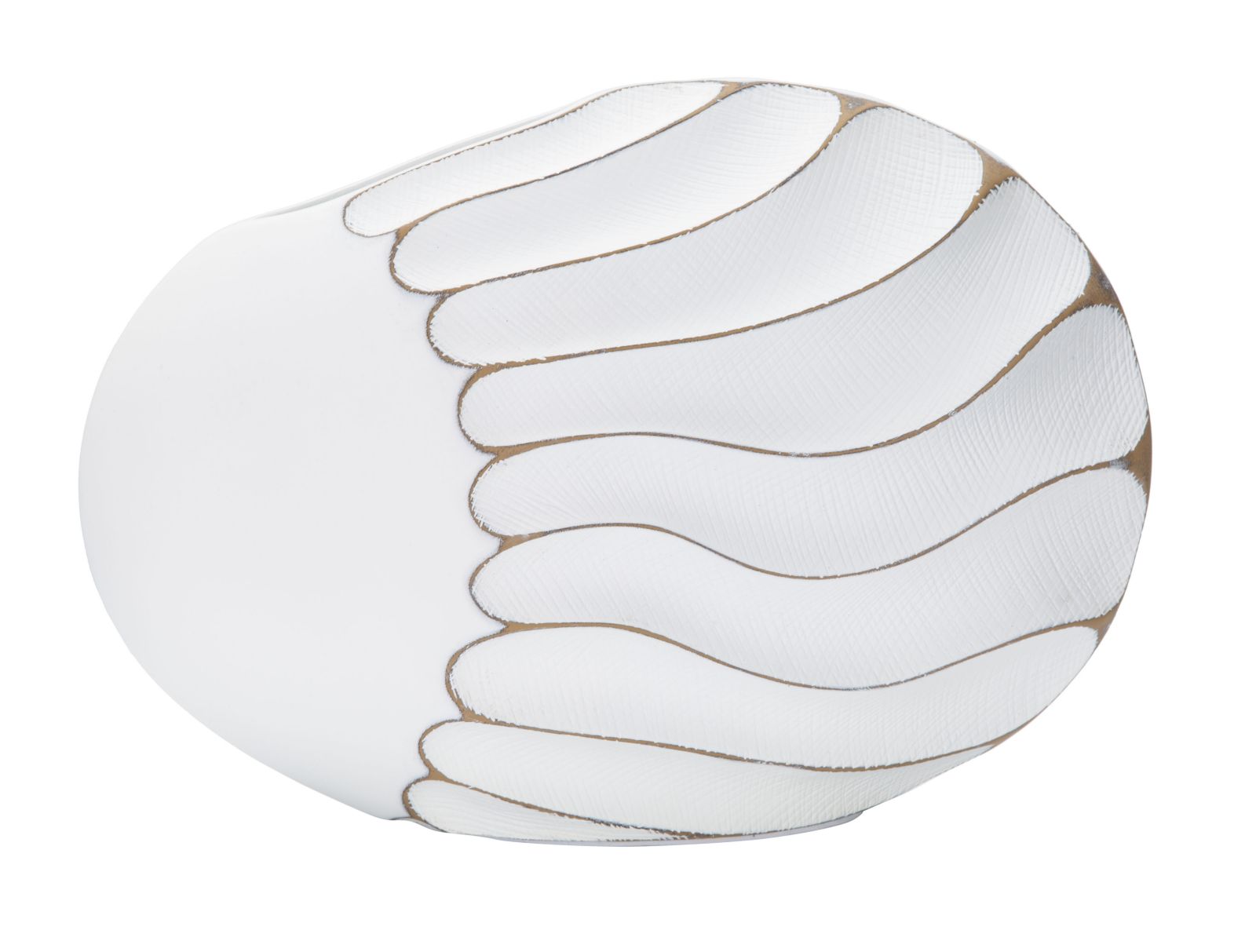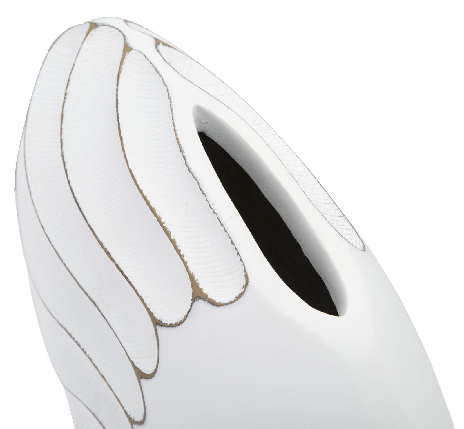 Vaas on valmistatud kvaliteetsest resiinist, mis on tuntud oma vastupidavuse ja kerge kaalu poolest. Resiin võimaldab luua keerukaid ja detailseid viimistlusi, mis muudavad iga vaasi ainulaadseks. Vaas on viimistletud valge tooniga, mis lisab sellele elegantsi ja samas toob esile mustri võlu. Valge värvitoon on ajatu ja sobib suurepäraselt erinevate sisustustrendidega, luues harmoonilise ja stiilse atmosfääri.