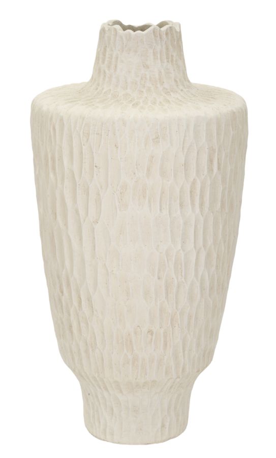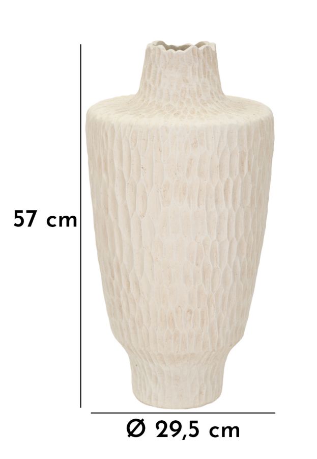 Vaas on valmistatud kvaliteetsest magneesiast, mis on tuntud oma vastupidavuse ja kerge kaalu poolest. Vaas on kaetud pehme beezi tooniga, mis annab sellele puhta ja modernse ilme. Beez värvitoon on ajatu ja universaalne, võimaldades vaasil hõlpsalt sulanduda erinevate värvigammadega.
