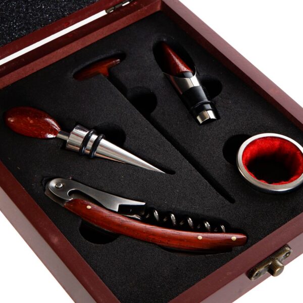 Veinitarvikute komplekt Inox on täiuslik kingitus veinisõpradele. Veini nautimine on omamoodi kunst, mis nõuab nii sobivat varustust kui ka stiili. Veinitarvikute komplekt mis on elegantses bambusest valmistatud karbis, esindab mõlemat aspekti suurepäraselt. Komplekt sisaldab korgitseri, korki, dosaatorit ja tilgastopperit.