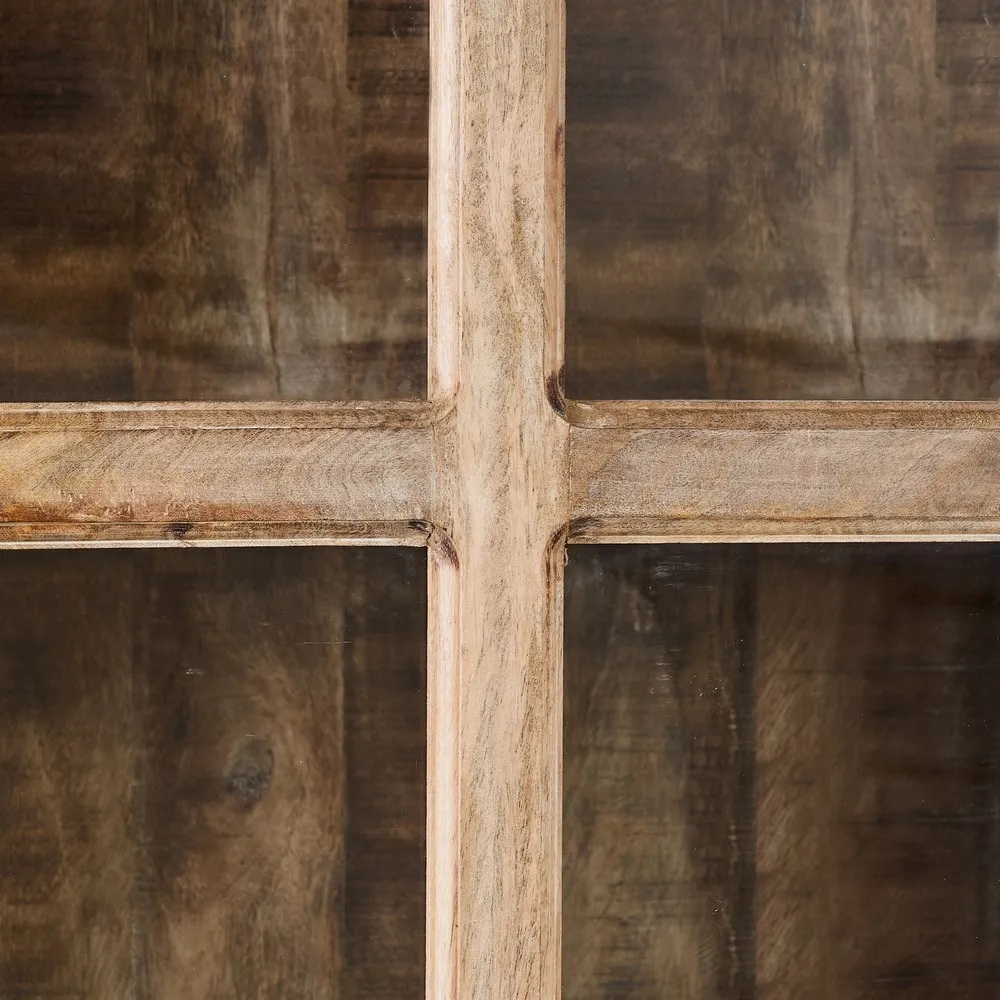 Mangopuit on tuntud oma erakordse stabiilsuse ja vastupidavuse poolest. See tähendab, et vitriinkapp teenib teid aastaid, säilitades samal ajal oma esialgse ilu ja terviklikkuse. Mangopuidu loomulik tekstuur toob ruumi hubasust ja kvaliteeti, mis on silmapilkset äratuntav.